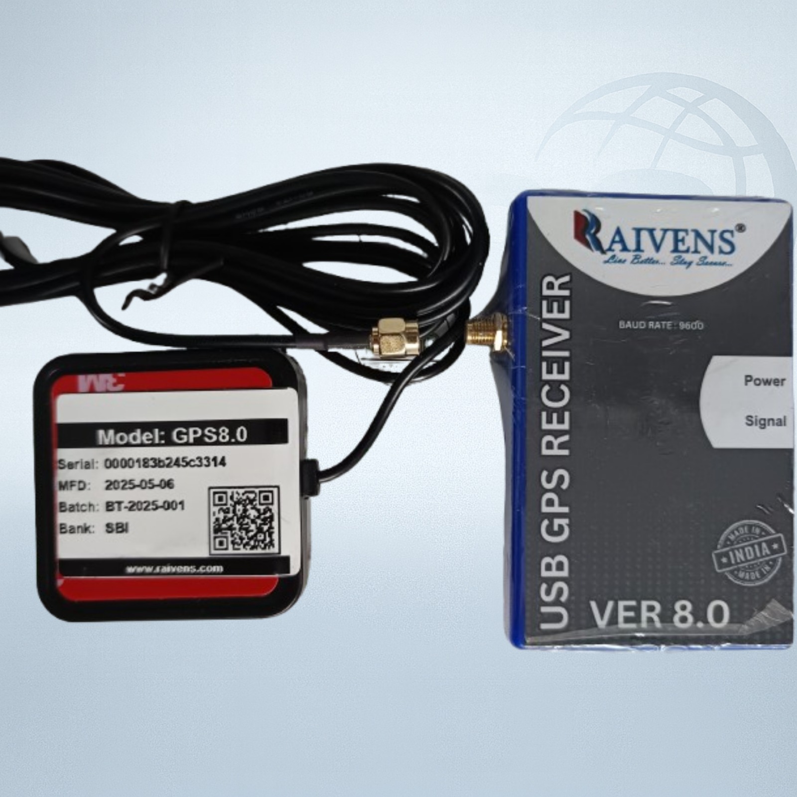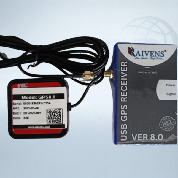 Raivens GPS 8.0 USB Receiver with Antenna – High-Sensitivity GPS for Aadhaar, Banking & Field Use